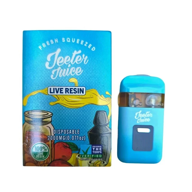 Marca: JEETER JUICE Sabor/Strain: Lemon Drop - Sour TangieTipo: Indica / SativaContenido: 2000 mlCartucho: 510 estándarTotal THC: +/- 86%Total CBD: <2%